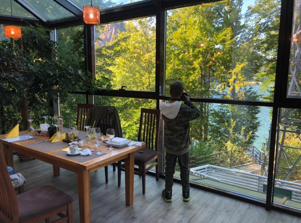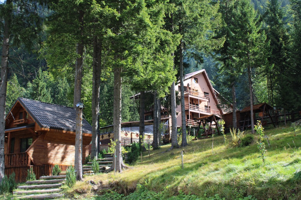 Мы не знали, чего ожидать от отеля в Румынии, посреди леса на горной дороге (а будет ли там что поесть вообще?), магазинов тут поблизости, ясное дело, нет совсем. В обе стороны от отеля ближайшая хоть какая-то еда – это 12 км в гору на перевал либо около 40 км к дамбе (больше часа езды) и это только при условии светового дня, освещения дорог тут тоже нет ))