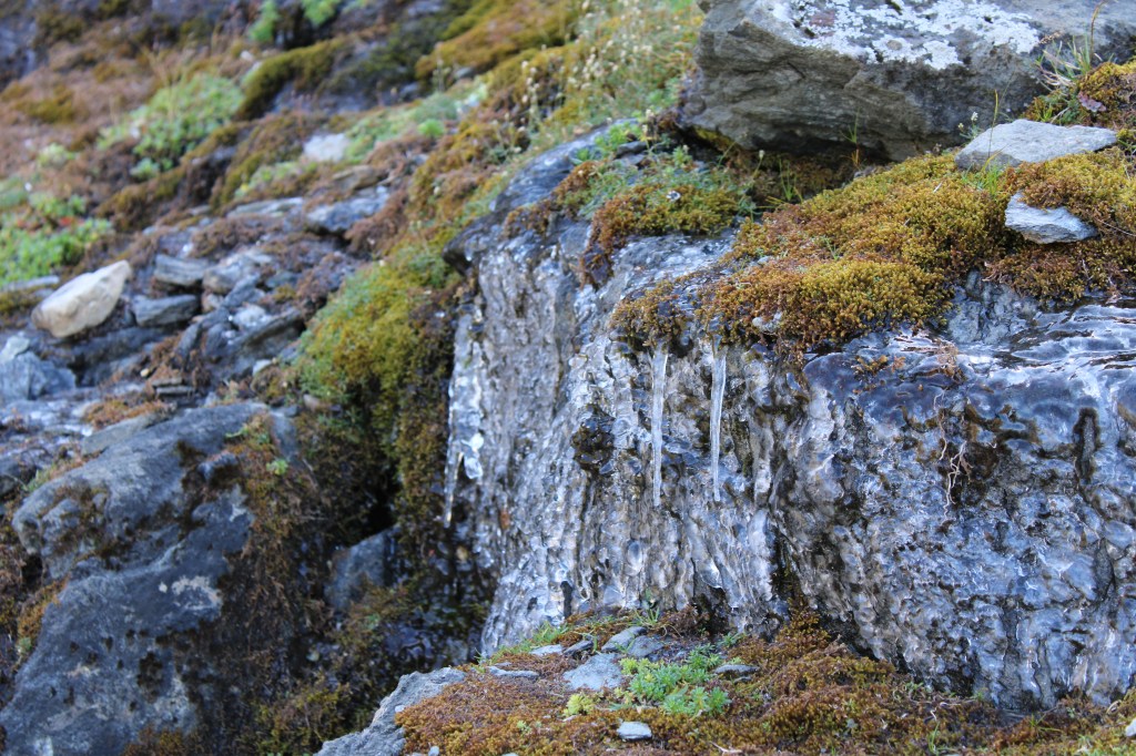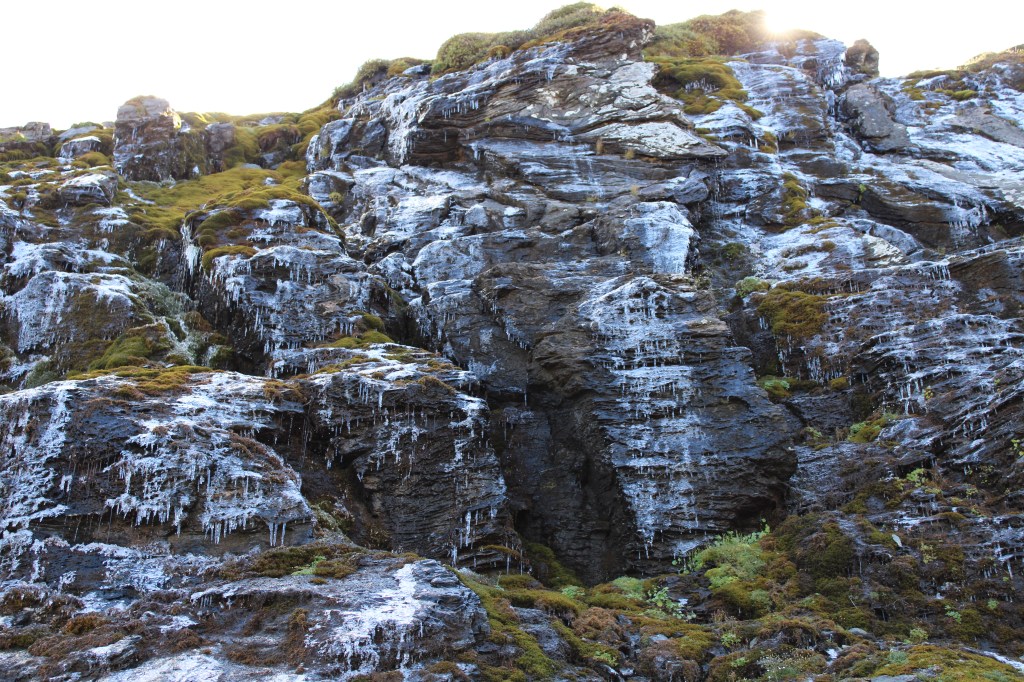 Удивительно, но на фоне солнечного озера – ледяной водопад..